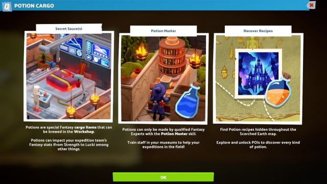To complement the new expedition mechanics, there’s also a new workshop where you’ll brew potions to help with expeditions. These potions heavily impact your fantasy expert’s stats, giving you a more favorable expedition run when you use the right potions.