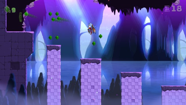 The titular masks also show up throughout the course of the game. There’s the eagle mask which lets Kaze fly and shoot projectiles. The shark mask lets her swim freely underwater and dash forward. Finally, the tiger mask grants an air dash and wall jump, while the dragon mask turns the game into an auto-runner. These show up in specific levels and are similar to the animals in DKC.