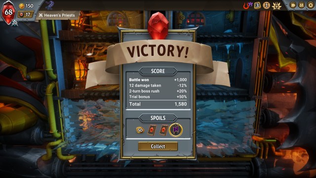 Monster Train also awards you a choice of a random artifact and champion upgrade before you start your run. And if you up your Covenant level — the level of difficulty that can be raised by completing runs on the highest unlocked level — you may get both more cards and more obstacles.