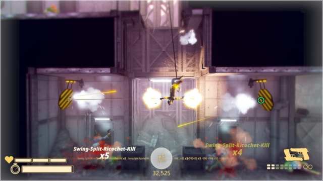 Despite My Friend Pedro‘s best selling points, there are still some flaws. The controls can be tough to get used to, as you must press or hold several different buttons at once or risk shooting a wall or getting blown away. I’d say the controls take time to master, but even near the end of the game I still found myself accidentally going out of my focus mode while my fingers scrambled in panic.