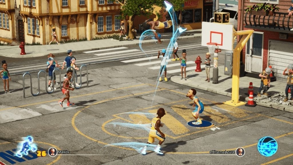 Honestly, playing NBA 2K Playgrounds 2 feels like an interactive sports anime. Like the original, there are over-the-top dunks and special moves (only performed by the Legendary characters), along with a lottery-style power-up system similar to kart racers. But it’s all cranked up to 11 this time around. There’s far more visual flair with even more insane moves. They also appear to have smoother, more fluid animation than before. Between all the insane flips, tricks, and sick jumps, you cannot convince me otherwise that all these players have superpowers. There’s even a new camera mode tucked away in the options menu which shifts the view behind the players, which I find more adds depth to the scene and makes the amazing moves look all the more amazing. If real basketball looked like this, I’d probably be the biggest fan ever.