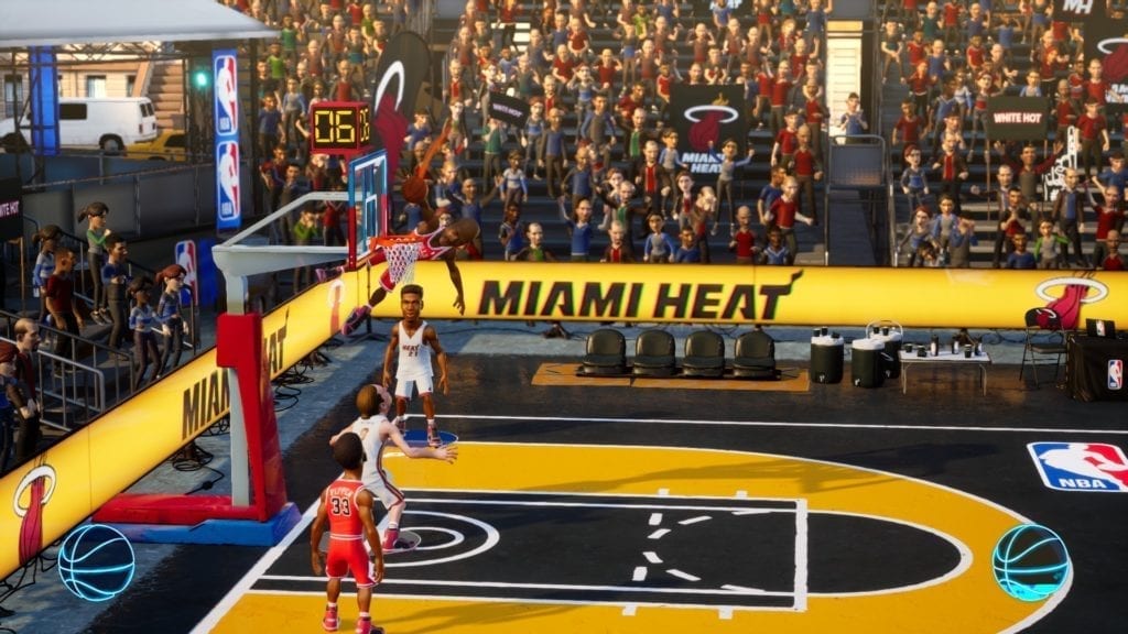 Here, you pick two characters from the same NBA team and go against two other NBA players from the various teams during a season. Your goal is to reach the Playoffs and then the Finals. The thing is, you always play on the same stadium-like court. The only difference is that the team banners change depending on who you’re competing against.