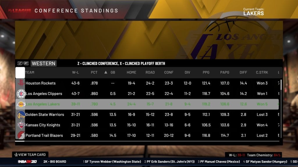 NBA 2K20‘s MyLeague remains the same as it has been since time immemorial. You’ve still got the same old teams with their updated rosters. You’ll even see the same premade expansion teams that you can add.