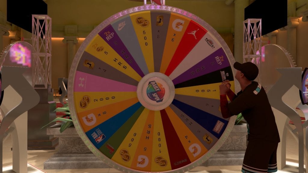 Perhaps the most controversial aspect of The Neighborhood is that it has a “daily spin” mechanic. There’s a small building that you can enter which has numerous “spin-the-wheel” machines you can interact with. Every 24 hours, you have a chance to win different prizes. This was seen as an attempt to glorify “gambling” in a basketball video game. I’ll delve more into this later in this article.