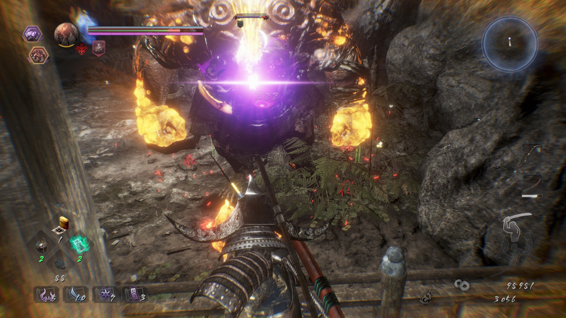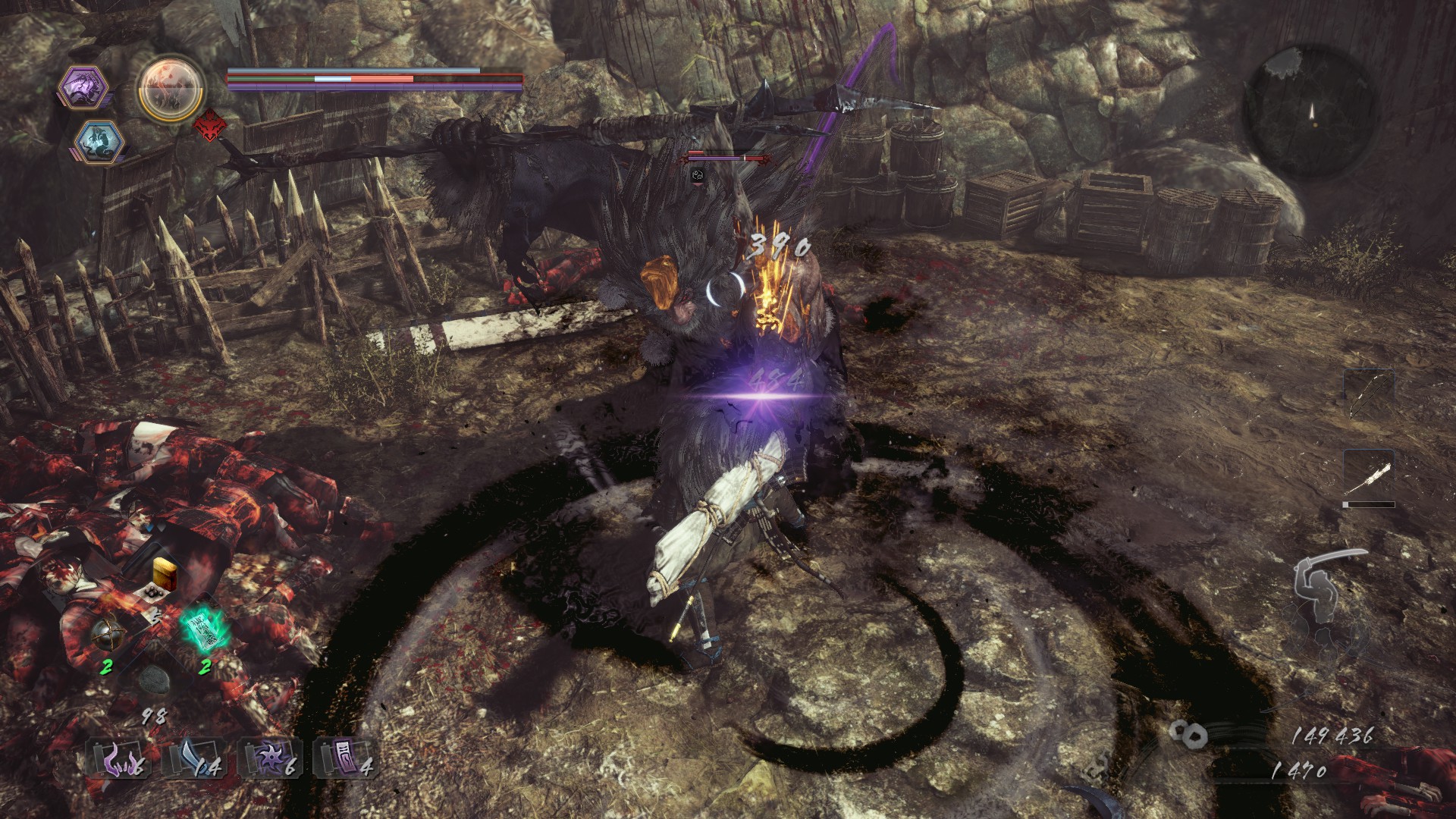 Then there are the Yōkai. I hate Yōkai. They’re often huge, grotesque demons, and Nioh 2 loves to place them in tight areas. The game wants you to block more than dodge, but that doesn’t do a lot of good when the camera is so close that you can’t see a thing. The way the camera works often reminded me of the initial release of Demon’s Souls. It hates to be near walls, and will gladly make it borderline impossible to see what you’re doing, choosing to instead zoom into objects at weird angles. It also does that annoying thing where it points downward as you get closer to your enemy while locked on. I died so many times simply from not being able to see what I was doing.