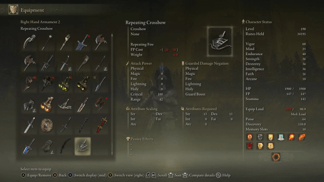 Sure, you can’t have a gun in Elden Ring, but you can have the repeating crossbow, which is basically the same thing. This OP weapon in Shadow of The Erdtree can be put in the ready stance and then fire a flurry of arrows at a target. It is basically a medieval submachine gun. However, it eats through ammo like no other weapon in the game, so use sparingly.