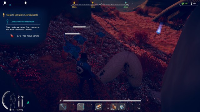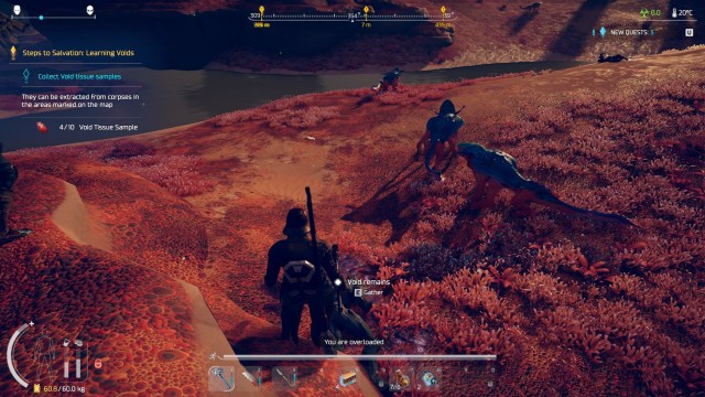 I respawned in the game’s main hub and was told that I needed to collect void samples from corpses. The locations were marked on my compass which shouldn’t be a problem.