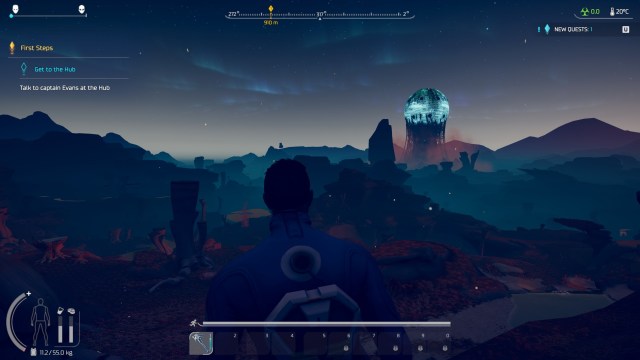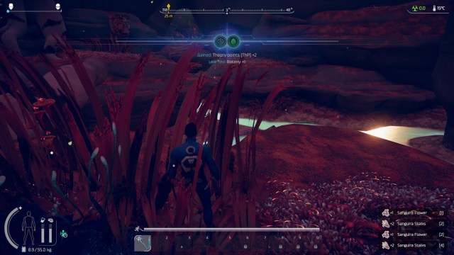 From there, you’re treated to a view of Kepler’s vast landscape. This biome (one of seven in the game) is a lush field that’s teeming with life. I started picking up plant samples to add to my collection, and these discoveries also give you tech points so you can unlock crafting materials. Think of the exploration and the discovery of alien flora and fauna as akin to No Man’s Sky or Journey to the Savage Planet.