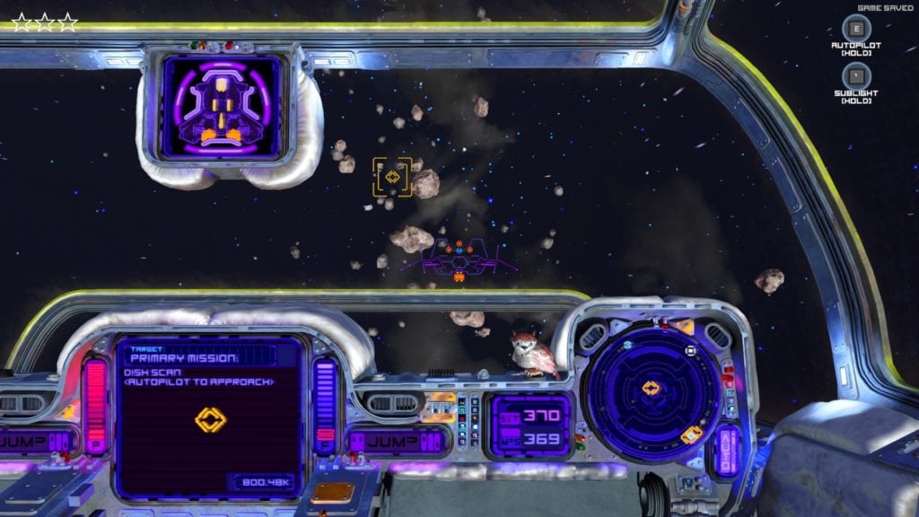 Since this game has some noticeably low system requirements, don’t expect much stutter in gameplay. I encountered no noticeable slowdown. This is especially impressive given how often the game allows you to skip cutscenes. Every time you takeoff from or land on a space station, the game triggers a cutscene. Similarly, every time you engage in auto-pilot (which is very often) the game triggers a cutscene. Of course, at first I took to enjoying the cutscenes. The more I progressed, the more I would quickly skip through them. Even during fast bouts of skipping, I noticed no slowing down as the game loaded post-cutscene.