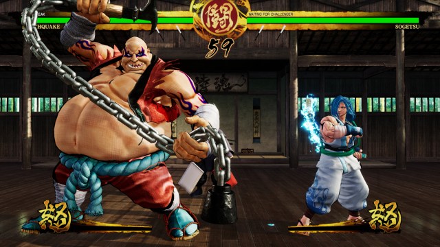 It’s not all katanas, though. Plenty of unconventional fighters round out the roster. Longtime series heroine Nakoruru can grab on to her eagle companion to launch special movies. Hopping, gurning kabuki actor Kyoshiro is a deadly fighter despite his clownish demeanor, and there are a few ninjas, ranging from the conventional to the bizarre (the mighty Earthquake, a giant bruiser who probably doesn’t do a lot of sneaking around).