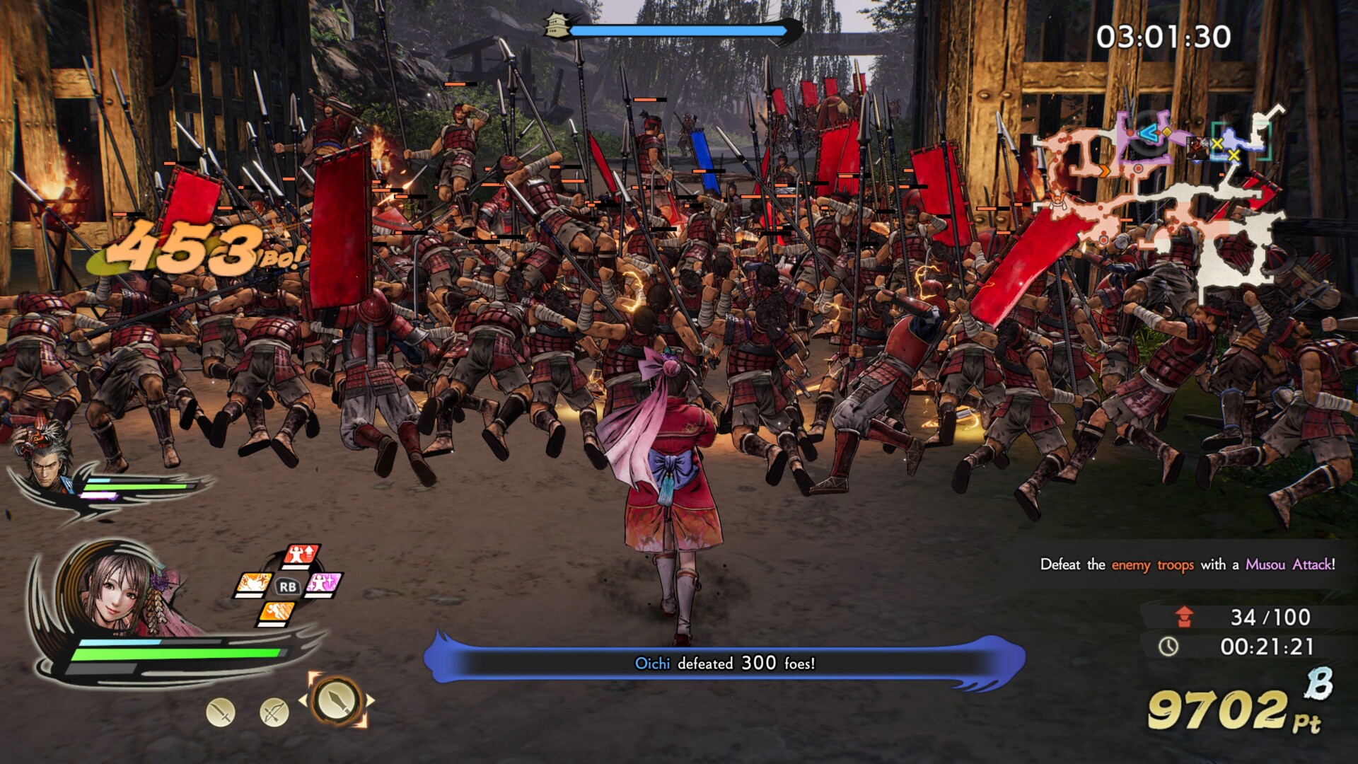 But that’s where the changes end. After the horribly received new combat system of DW9, Samurai Warriors 5 plays it as safe as can be, offering very little that’s new. The rush attacks and two-character system of the previous game thankfully return, but rush attacks no longer have their own charge attacks. The combat is exactly as you remember it otherwise. Attack strings, charge attacks, Musous, rage moves, it’s all present and accounted for. If you’ve played the previous game, you know exactly what to expect here. Omega Force has been extremely careful not to rock this particular boat. This is very much the same basic game we’ve been playing for a long, long time, only with the Ultimate Skills from Pirate Warriors thrown into the mix. These grant buffs and attacks on a cooldown. I didn’t care much for them in that game and I didn’t care much for them here either.