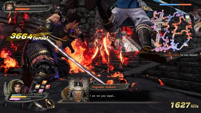The game focuses on chapters for both Nobunaga and Mitsuhide, offering a well-conceived, lively version of the story. Characters are younger here than they usually are in other games. Their portrayals are also less fantastical and more believable. For instance, Imagawa Yoshimoto has been a silly old man with painted skin and a love of Kemari for a long time. In Samurai Warriors 5, he’s burly and opposing. Nobunaga, Toyotomi Hideyoshi, and Tokugawa Ieyasu are all young. Some will undoubtedly miss the ridiculous anime flair the series had, but I’m always happy for solid changes when it comes to Musou games.