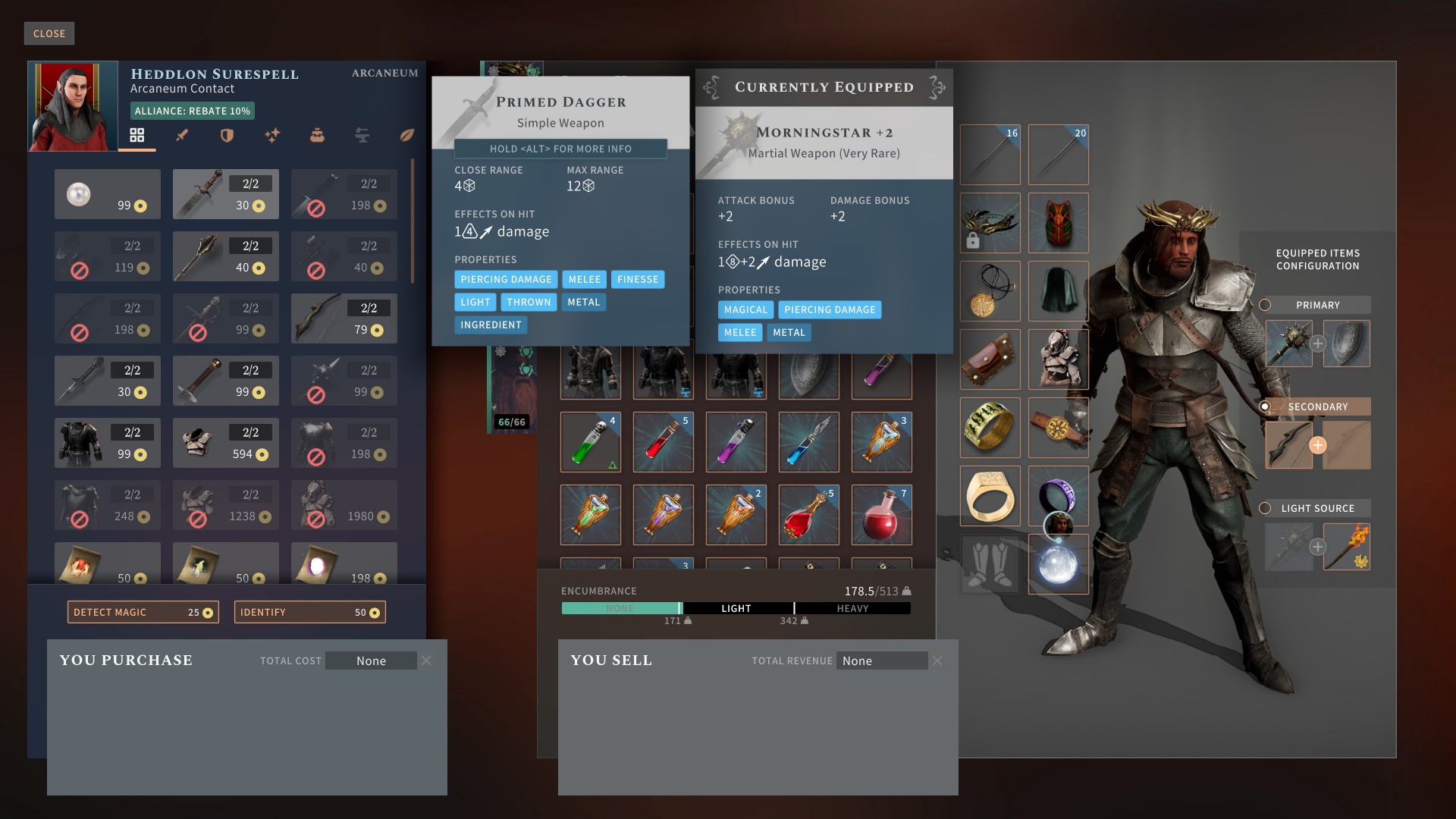 The presentation of certain information could also use a bit of work. For instance, it took several hours for me to realize that you can’t turn a weapon into a “primed” version that can be used for crafting. Apparently, “primed” items can only be found as loot or by purchasing them from a specific vendor once you’ve increased your reputation. Likewise, I wondered why both a short rest (one hour) and a long rest (almost a full day) only allowed me to attune one unique item per character. Speaking of items, I’d prefer having a general/universal inventory system used by the entire party as opposed to splitting them up per character. Even with a Bag of Holding, I do have a pet peeve whenever I need to check and arrange each character’s backpack.