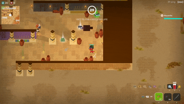 The mechanics of Super Animal Royale are straightforward. If you’ve played any kind of battle royale before, you’ll get the hang of the looting in no time. As for the shooting, it’s more like an old-school, top-down shooter. Your crosshair determines which direction your character looks and shoots, while you move around, dodge, and use items with your keyboard controls.