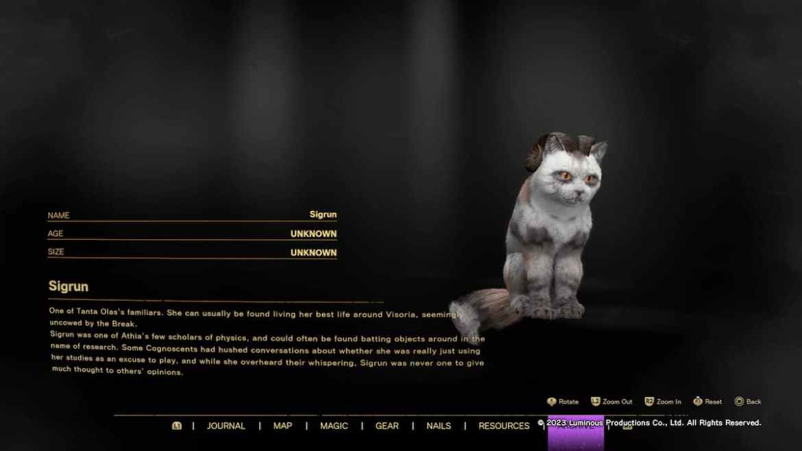 Sigrun looks tired, like she’s been through a rough patch. Some might find that cute, but in the world of magical cats Sigrun ranks the lowest.