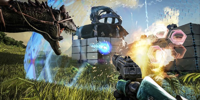 After a while, you start taming dinosaurs and other prehistoric beasts. They aren’t pets, though. Oh no. You’re arming them with high-tech armor and weaponry and charging your mounts into exciting battles against the island’s dominant predators. If you get tired of that, you can charge them into raids against other players too or invite them to join your tribe and survive together.