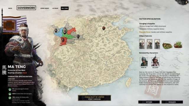 One last thing: In Total War: Three Kingdoms, Ma Teng is a governor, not a warlord. He cannot declare himself emperor once his prestige is high enough. He remains supportive of the Han Empire through and through. This means the later stages of your Total War campaign involve taking out all three pretenders to the throne once they declare themselves.