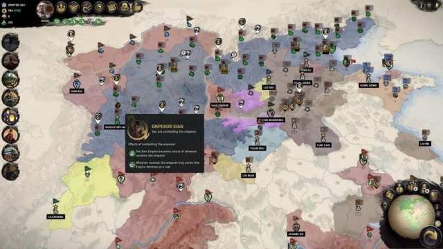 The former lets you follow the historical route in Total War: Three Kingdoms. It’s risky but rewarding. The risk is there due to Lu Bu, who, thankfully, did not even pop up in my territory. The rewards are immense. Capturing Dong Zhuo’s capital of Chang An east of your provinces will net you control of the emperor, which automatically vassalizes the entirety of the AI-controlled Han Empire!