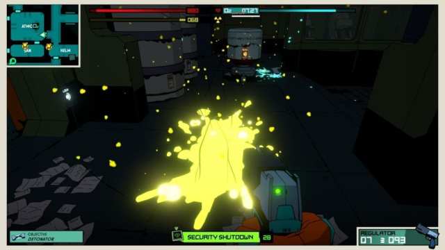 You can only bring three weapons from three different categories with you in Void Bastards, which is significant since different enemies require different strategies to face. Going up against the cluster of floating heads known as Patients without using the Bushwacker proximity mine is a great way to waste a ton of ammo. And the game won’t always give you ammo for your favorite weapons. Overall, shooting feels decent if a little light and inaccurate at times, but weapons do their job.