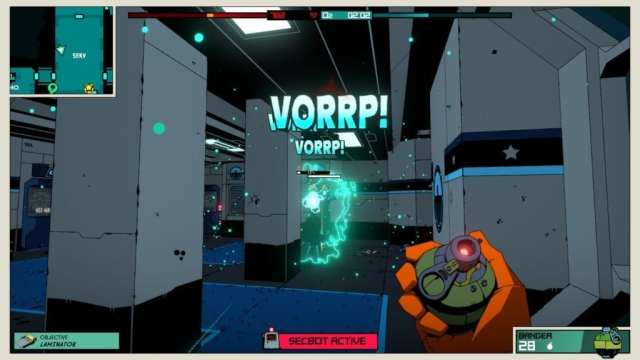 Visually, the game is simple but nice. While the enemies are all physically drawn with tons of personality, everything else is cel-shaded 3D, presented from a first-person perspective. The overall style is meant to evoke a sort of mid-20th-century comic book aesthetic, and it works really well. The comic book scenes that you’re rewarded with once you complete a priority item are silly and humorous. They’re also fully voiced and rather enjoyable.