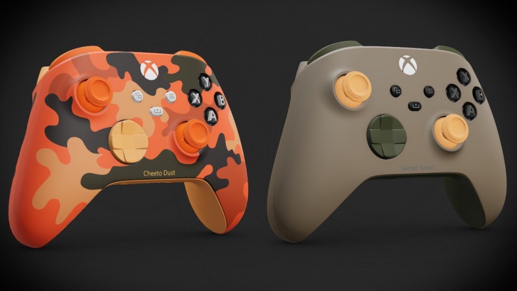 You know, there’s nothing worse than getting your hands full of sticky, icky Cheeto Dust, so why not get a controller that can mask the gunk? With the newly revealed Cheeto Dust variant, you can game the night away while not worrying about staining your controller in the process. And you know, sweats are ruining a lot of online games for players, so why not celebrate their demise with the Gamer Sweat Design Lab option? The lovely shade of brown will never need to worry about dirt and grime, as it’ll blend right in. Excuse me, I’m going to wash my hands now.