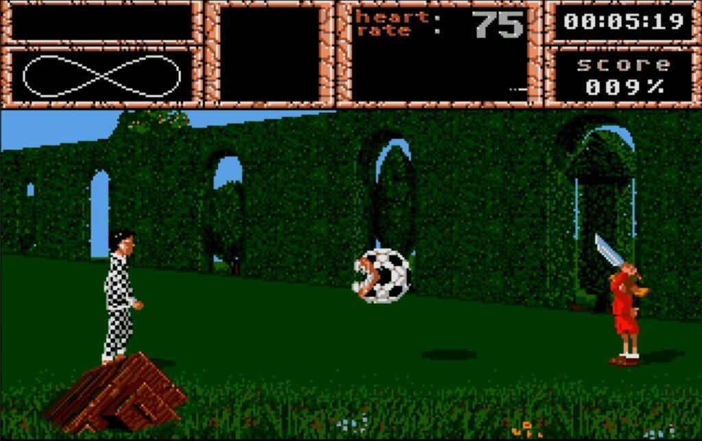 The developers must have known their game made no sense. They brought in Rupert Goodwins, a British writer and former technical editor for PC Magazine, to write a 64-page novella accompanying the game. In the novella, a demon named Zelloripus possesses Emily – the girlfriend of Weird Dream’s protagonist Steve – and gives Steve three mystical pills to help with his illness. Because Steve is a teenager growing up in the 80s, he takes the mysterious pills and, needless to say, has some bizarre dreams. The novella’s plot ends and the game begins with Steve on the operating table, being put under to fight for his life inside his nightmares.