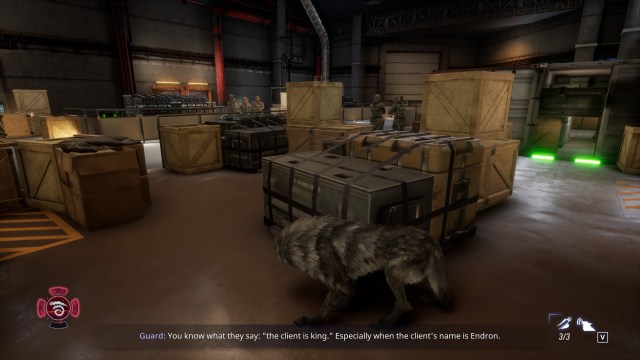 Once you start a mission, Cahal just goes from one room to the next, carefully avoiding guards or crossing ventilation shafts as a wolf.