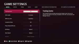 Half Length was set to 5 minutes, the Difficulty Level was set to Legendary (maximum), and Game Speed was set to “Default”.
