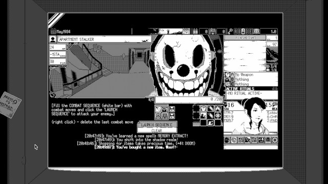 Sadly, the one part of World of Horror that didn’t satisfy me too much was the mystery solving. While it’s good that the game tells you where to go to further the mystery, I feel it takes away from that sense of accomplishment I would’ve felt if I had solved it myself. For example, when reading some text, it said something that made me believe I should investigate one location. That made me feel like I was putting it together myself.
