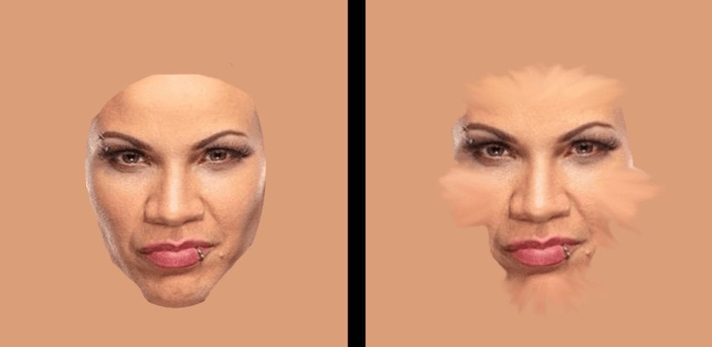 The second option (on the right) will require us to download the Smudge Tool, which is a separate (free) download. Using the Smudge Tool has a lot of benefits since it allows the skin color to wrap around the CAWs face when you’re creating it. The downside is that if the outline of the face is too dark, it can mess up the coloring even more. You also don’t want to accidentally smudge some of her facial features.
