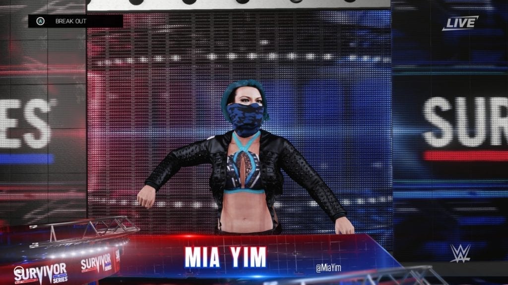 For her entrance, it’s as easy as watching one of her matches (in full, of course, not just the highlights that WWE’s YouTube account releases). For instance, if you’re subscribed to the WWE Network — for $9.99 (ahem!) — you can watch some of her bouts in the Mae Young Classic. Certain motions in the Create-an-Entrance feature aren’t available, though, so you’ll have to make do with the next best option.