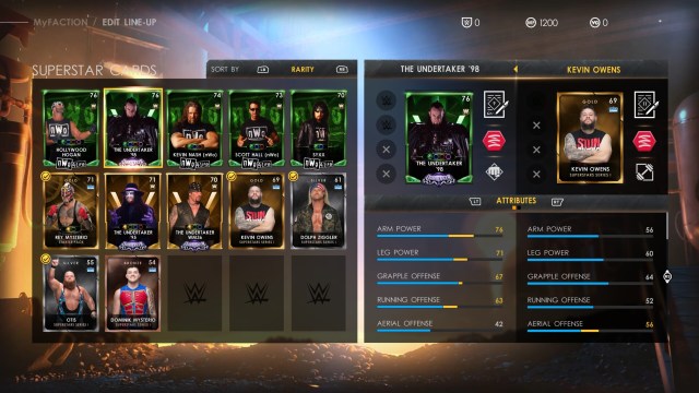I did say that Universe Mode was one of the weakest features. Well, MyFaction is the other one. Think of MyFaction as a collectible card game where you open packs, form a team, and have your wrestlers fight a “tower” (i.e., sequence of matches). You gain daily login bonuses and virtual currency, as well as a means of spending real-world money.