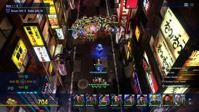 This is Kiwami 2‘s take on the Clan Creator mode from Yakuza 6. There are some notable changes, mind. For one, it’s far more simplified. Teams are broken up as three groups of eight, and the primary goal is defense. Enemies swarm onto a top-down board, where you position your employees to protect precious construction equipment. The mode feels more like a tactical tower defense this time around, where you place units strategically based on four unit types: balanced, attack, defense, and support. You can activate special abilities in some units, such as repairing equipment or buffing attack damage for a set amount of time. Enemies come at you in waves, and often you’ll have to deal with tough bosses that take all your units to defeat.
