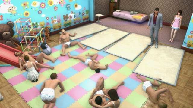 This is, of course, all part of the Yakuza charm, which you would be a fool to ignore. Sure, you can go at it a few rounds with the claw machine and nab yourself that elusive fat bird plushy. But with a bit more effort, Kiryu could find himself fighting hardened thugs wearing diapers, or voicing the gay protagonist of a Boys Love video game. Yakuza-style awkward hilarity? Seek, and ye shall find.