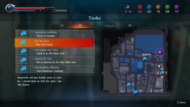 Questing has also been vastly improved. You can track all your current objectives in a Tasks menu, which displays both main missions and substories. You can scroll through your list of substories, or side missions, and the map will highlight which is which, making it far simpler to track. For years now, I’ve gotten used to the more archaic map system featured in Yakuza. I feel that I never knew how much I’d needed the upgrade until now.