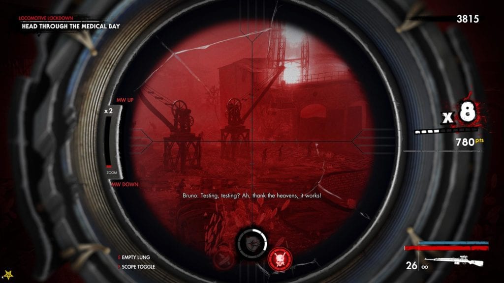 Note: All sniper rifles can be upgraded to have a Vampir Scope which returns health after each critical hit. It’s very helpful if it procs, though it automatically gives your scoped vision a blood-red tinge.