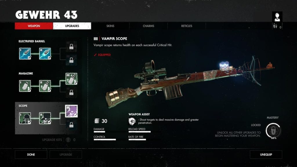 You can find Weapon Upgrade Kits while going through Zombie Army 4‘s missions. Each one is used to unlock a new upgrade for your chosen weapon. Weapon Upgrade Kits can be earned via: