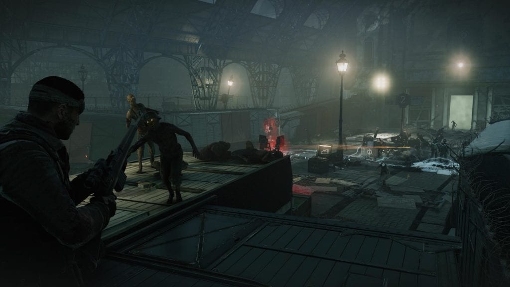 In the HQ, don’t open the door to the train station just yet. Plant some teller mines in the surrounding area first. There’s also an ammo crate nearby so you can stock up. Once you’re ready, open the door, skip the cutscene, and eliminate the undead.