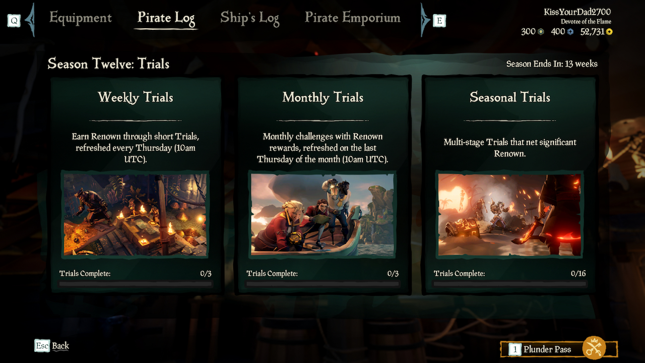 When I played Sea of Thieves again after my break, the Seasons and Renown were introduced. Honestly, I initially ignored them. The different trials, the track, the new menus – I couldn’t quite be bothered.