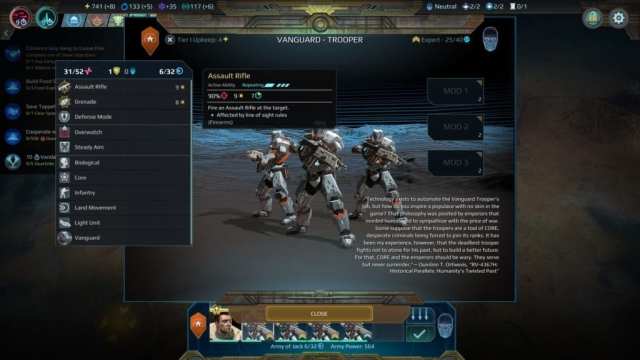Defending armies get to go first and you’ll move your units hex by hex. You can also go into cover, and there are even perks that improve your accuracy or range if you’re in cover. Most attacks will do the default damage as-is unless it’s buffed or defensive measures are in place. Another factor to consider is “grazing” where you only partially hit a target, doing half the damage.