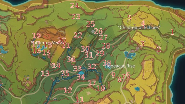 Here’s an overview of every Natlan Pyroculus location in Genshin Impact for reference. Keep reading below for zoomed-in maps and more detailed information about where to find every one of them.