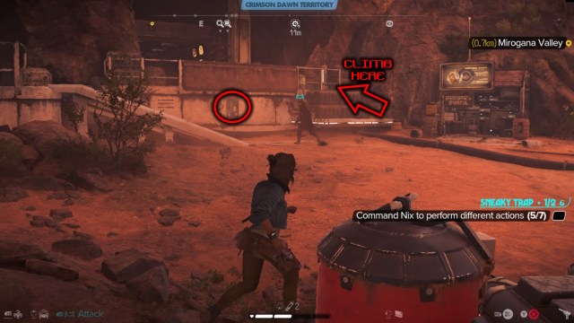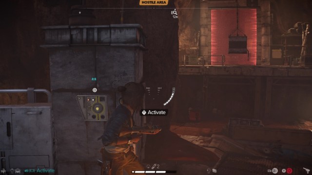 The best way around this problem is to send Nix to the switch while you wait by the fan. Watch out for the pair of patrolling guards as you approach the vault. The guards have terrible vision in Outlaws, so you’ll be fine if you take your time. That said, you can get caught easily and thrown out which will lower your Reputation with Crimson Dawn.