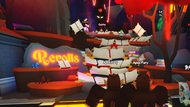 To apply a new Quirk or reroll a Quirk in Anime Champions, you need to visit the Quirks space in the Rerolls section of Champion City (the main hub). You will find this just outside of the main lobby with the teleport.