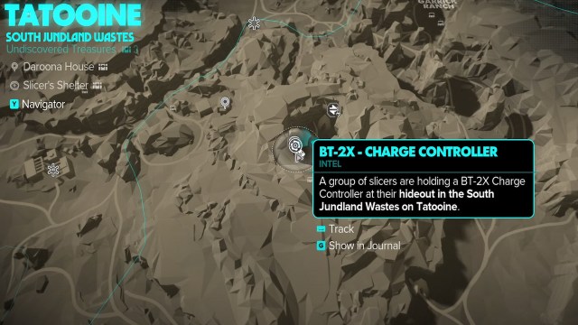To get into the hideout, you’ll need to use a ramp on the east side to launch your speeder over the gap. With some exploring, you may be able to find the hideout, although it’s likely better to wait for the intel for this one.