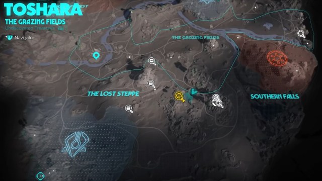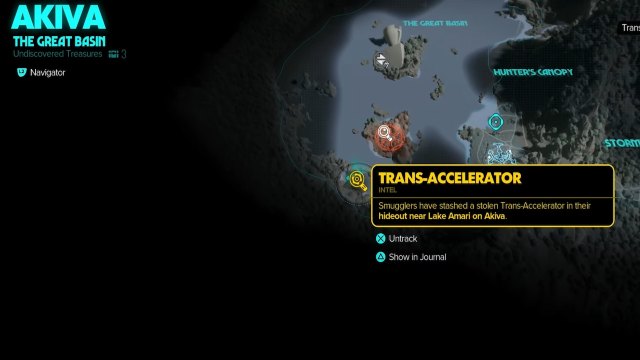 The intel for this part will bring you to south west edge of the map on Akiva, in The Great Basin. Like before, you’ll need the Speeder Repulsor upgrade to travel over the water. You’ll also need the Fusion Cutter.