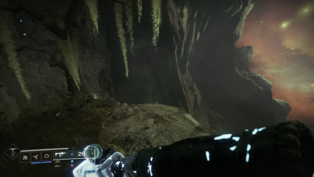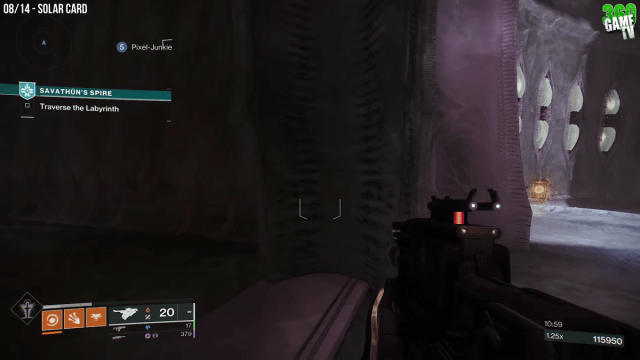 #2 During the labyrinth section of Savathun’s Spire, head through the door directly to the left of the rune table. Turn around, and on the ledge through the door is the second Solar Opaque card in Destiny 2.