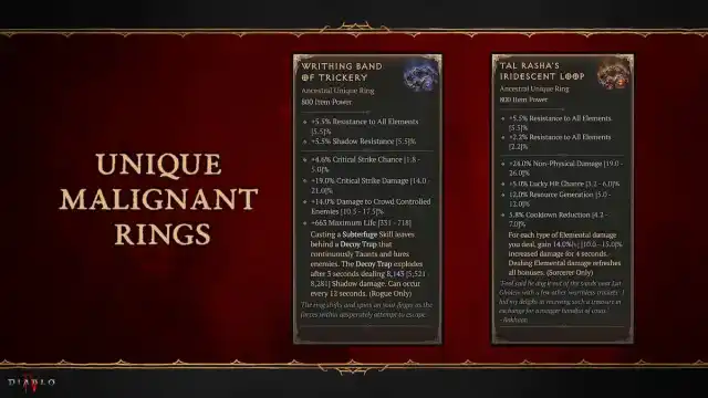 Diablo 4: All New Malignant Rings