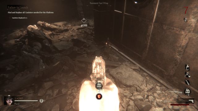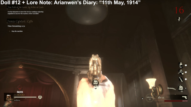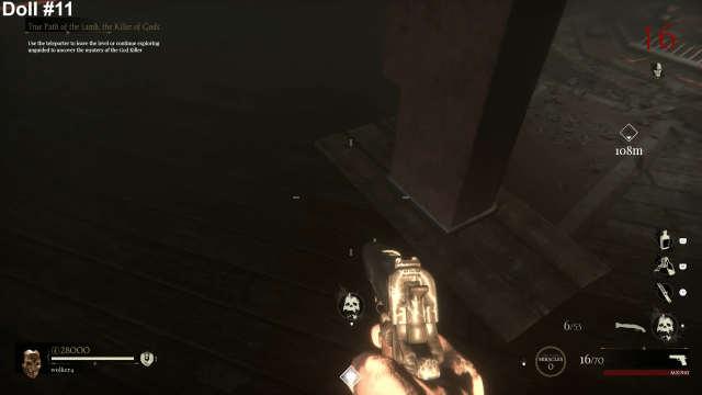 This Sker Ritual doll is an absolute scramble in the dark, literally. There is no light in this room, so you will have to trust luck and instinct. To find the doll, head to the ammo resupply, and you will find it just behind. At this point in the level, there is a whole hoard of enemies in a tight space, so make sure you’re loaded up with miracles.