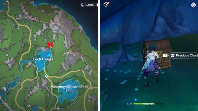 To obtain the final Drained Conch Cup of Genshin Impact, you must finish The Wild Fairy of Erinnyes first. Once you have finished the quest, head toward the cave at the north of Loch Urania. In this cave, you will find a Precious Chest beside Pahsiv. Inside this chest, you will get the fourth Drained Conch Cup.