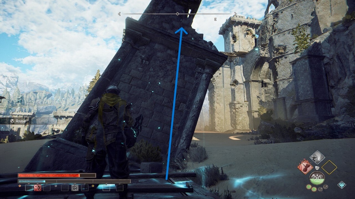 Climb to the right side of the structures until you reach the second Enhanced Raise shard, as shown in the map above.